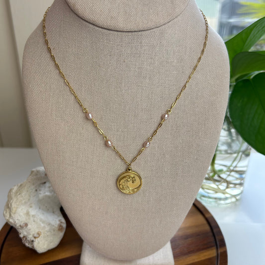 Big Waves Ocean Surf 18k Gold Plated Pendant Necklace