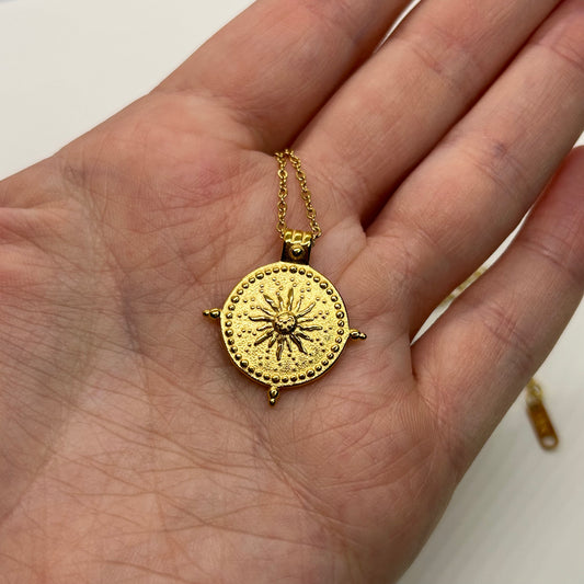 Sun Seeker Compass Medallion Gold Plated Pendant Necklace