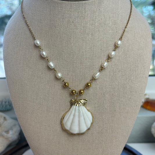 White Shell & Freshwater Pearls Necklace