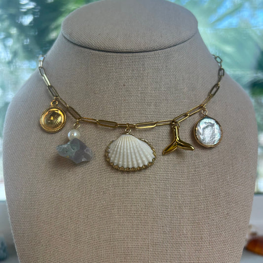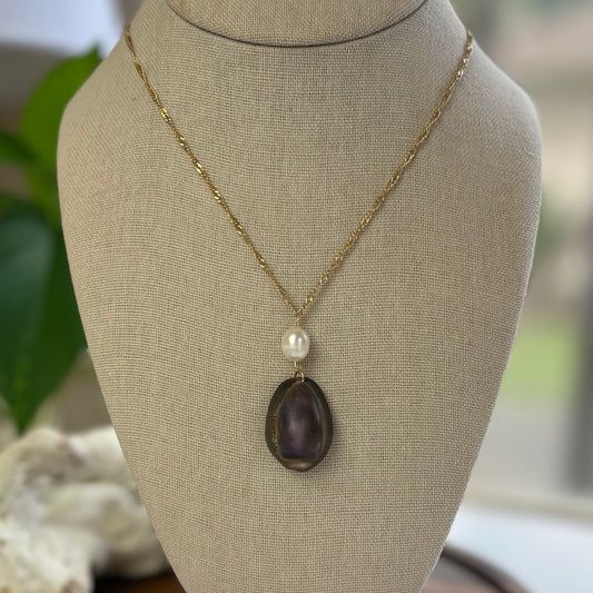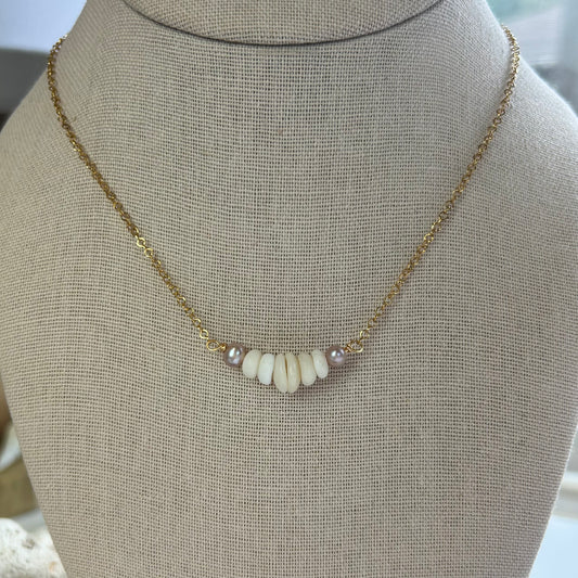 Pearl Beaded Mulberry Drupe Shell Necklace