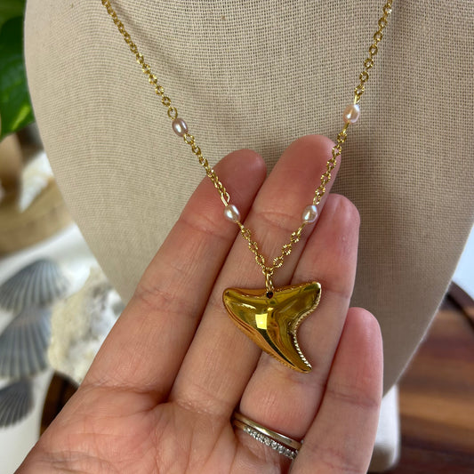 Sold outShark Tooth & Petite Pearls Necklace