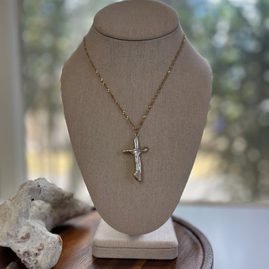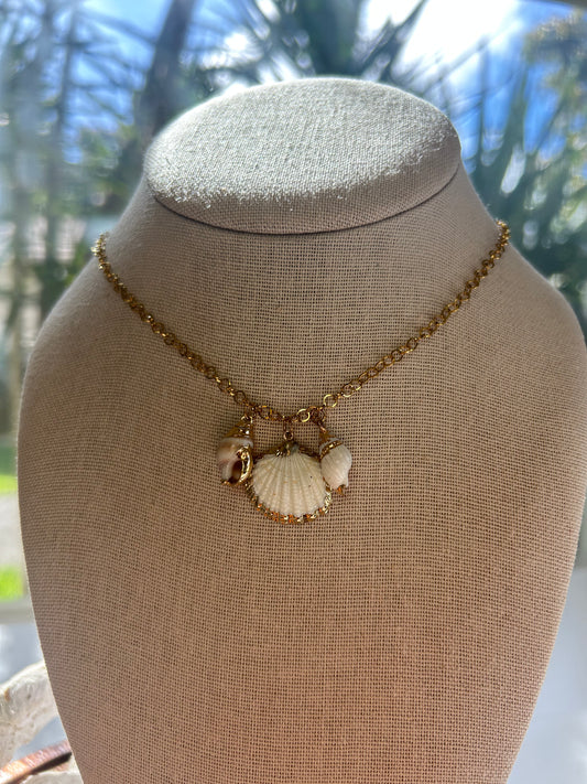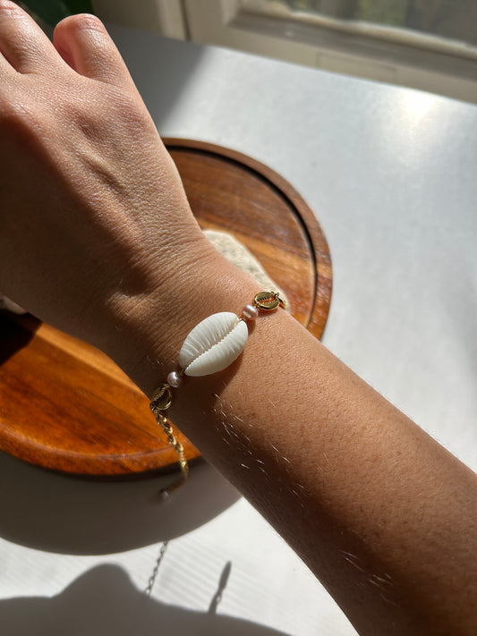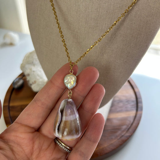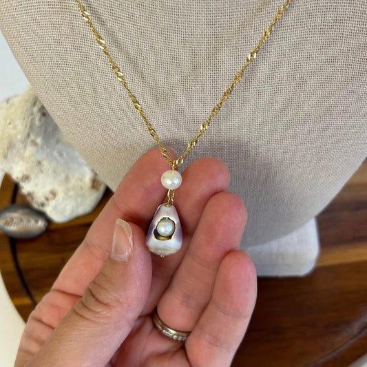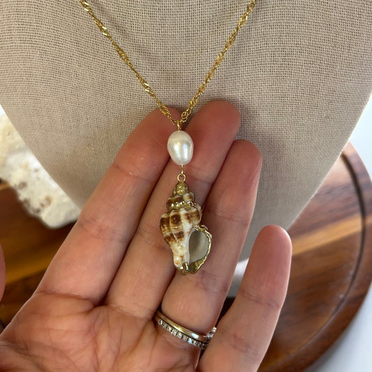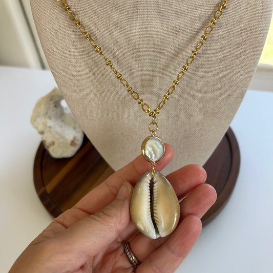 Cowrie Shell & Pearl Drop Pendant Necklace