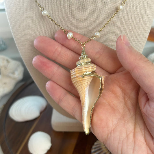 Shell & Pearl Pendant Necklace 18k Gold Plated