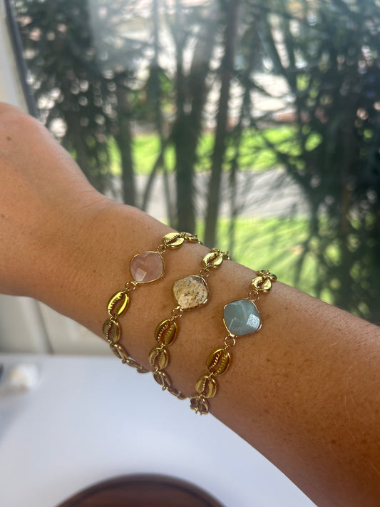 Cowrie Shell Stone & Pearls Stretch Bracelet
