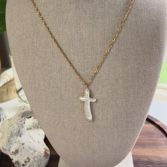 Baroque Pearl Cross Pendant Necklace