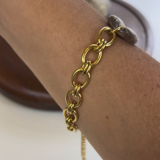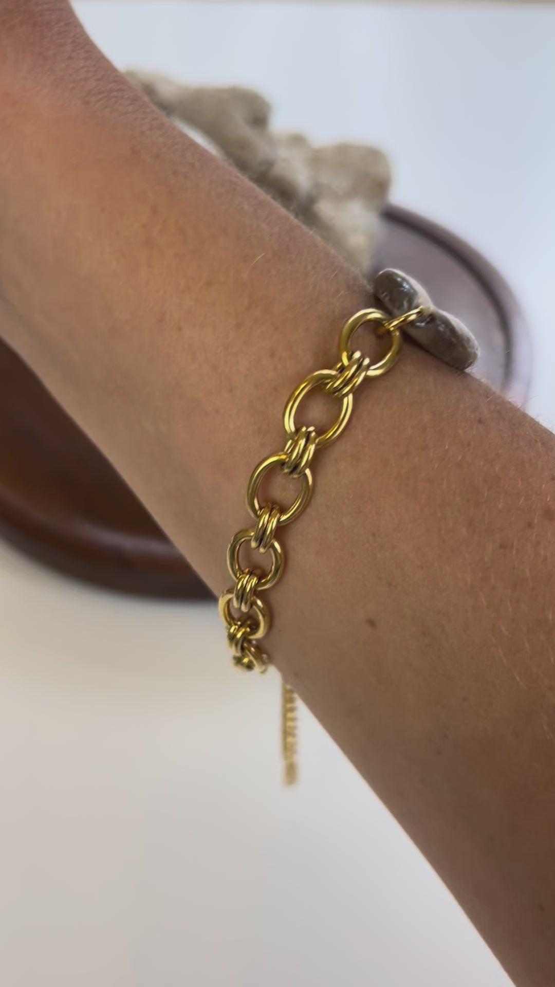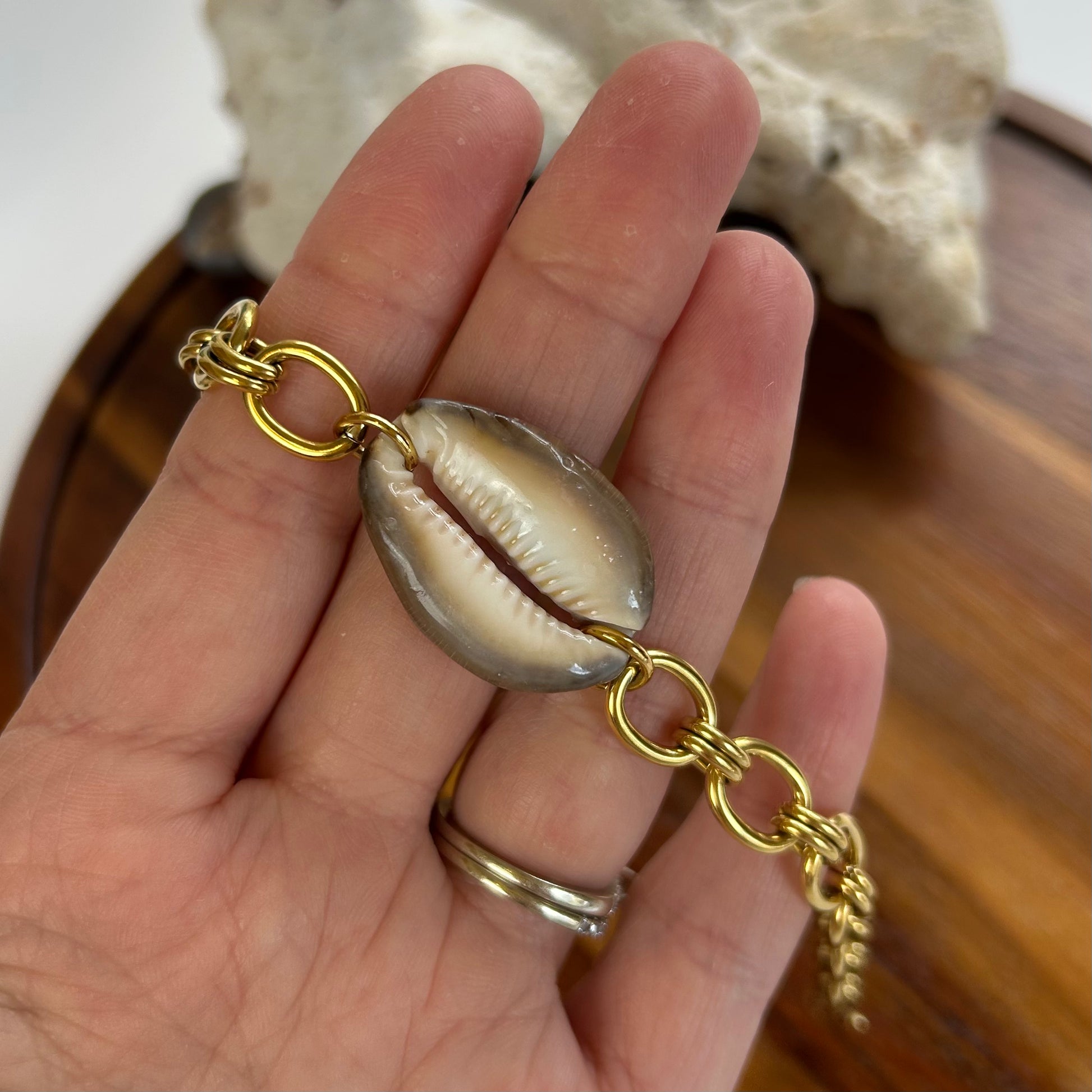 Handmade in Hawaii! I love the neutral brown tones on this natural cowrie shell slice(with gloss finish)! Centered on a classic chunky link (18k gold plated, stainless steel filled) Approximately 9.5 inches in total adjustable length including lobster clasp and extender