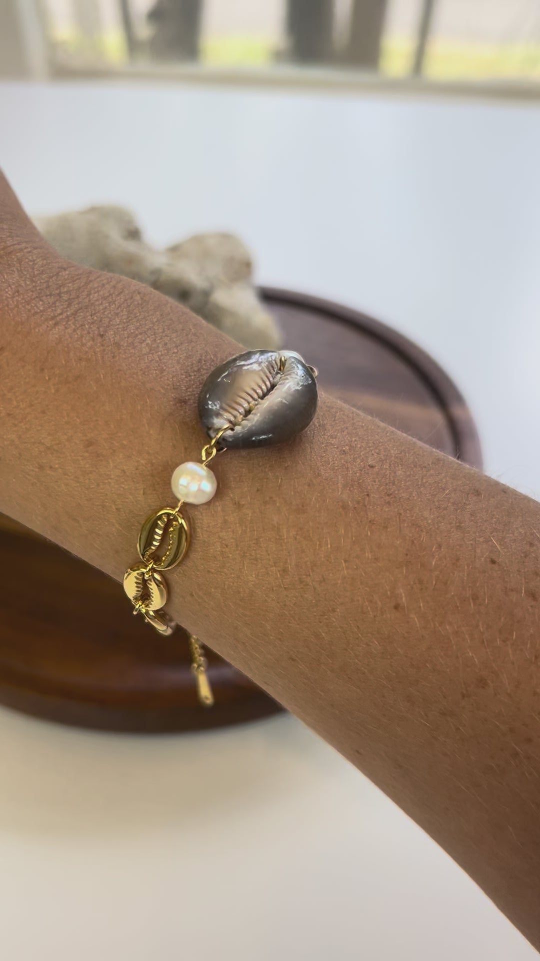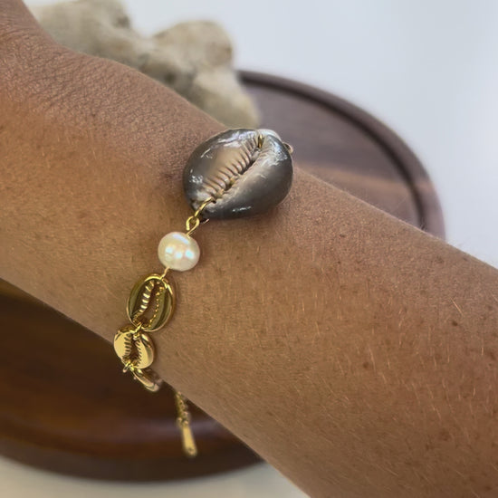 Cowrie & Pearls Shell Link Bracelet