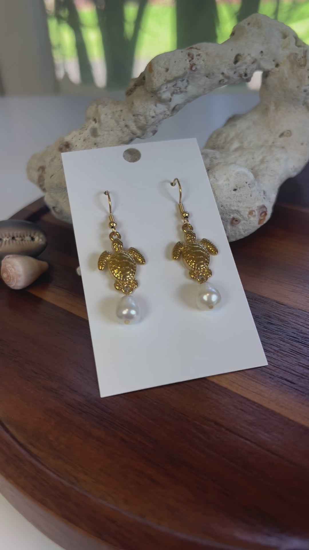Honu & Pearls Gold Plated Earrings